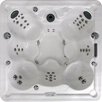 Vegas spa och dess unika sätesplacering ger komfort för sju människor och innehåller två djupa terapisäten, två sidosäten, ett säte på mellannivå, ett avsvalningssäte/trappa och ett superdjupt säte där du kan sänka dig ner i vattenterapin.