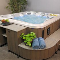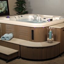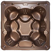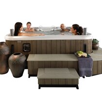The 750™ Marquis e-Series hot tub is dazzling! The hot tub's unique seating positions provide comfort for seven people and include two deep therapy seats, two side seats, one mid-level seat, a cool down/entry step and a super deep soak seat. Standard features include two cascading waterfalls, interior LED light, stainless steel jet trim, pillows and zoned jetting for 50 jets. Plus you have the option to enhance your experience with the built-in stereo system, Twilight LED lights and Environments. With room for a crowd, the 750™ is your dream hot tub!