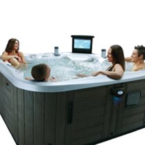 he 660™ hot tub is simply amazing! Besides the standard features such as two cascading waterfalls, interior LED light, stainless steel jet trim, pillows and 60 hydrotherapy jets, the unique seating positions offer everyone the perfect spot to relax. Plus you have the option to enhance your experience with the built-in stereo system. With room for the entire family, plus the super deep therapy seat, the 660™ is your private tropical oasis.